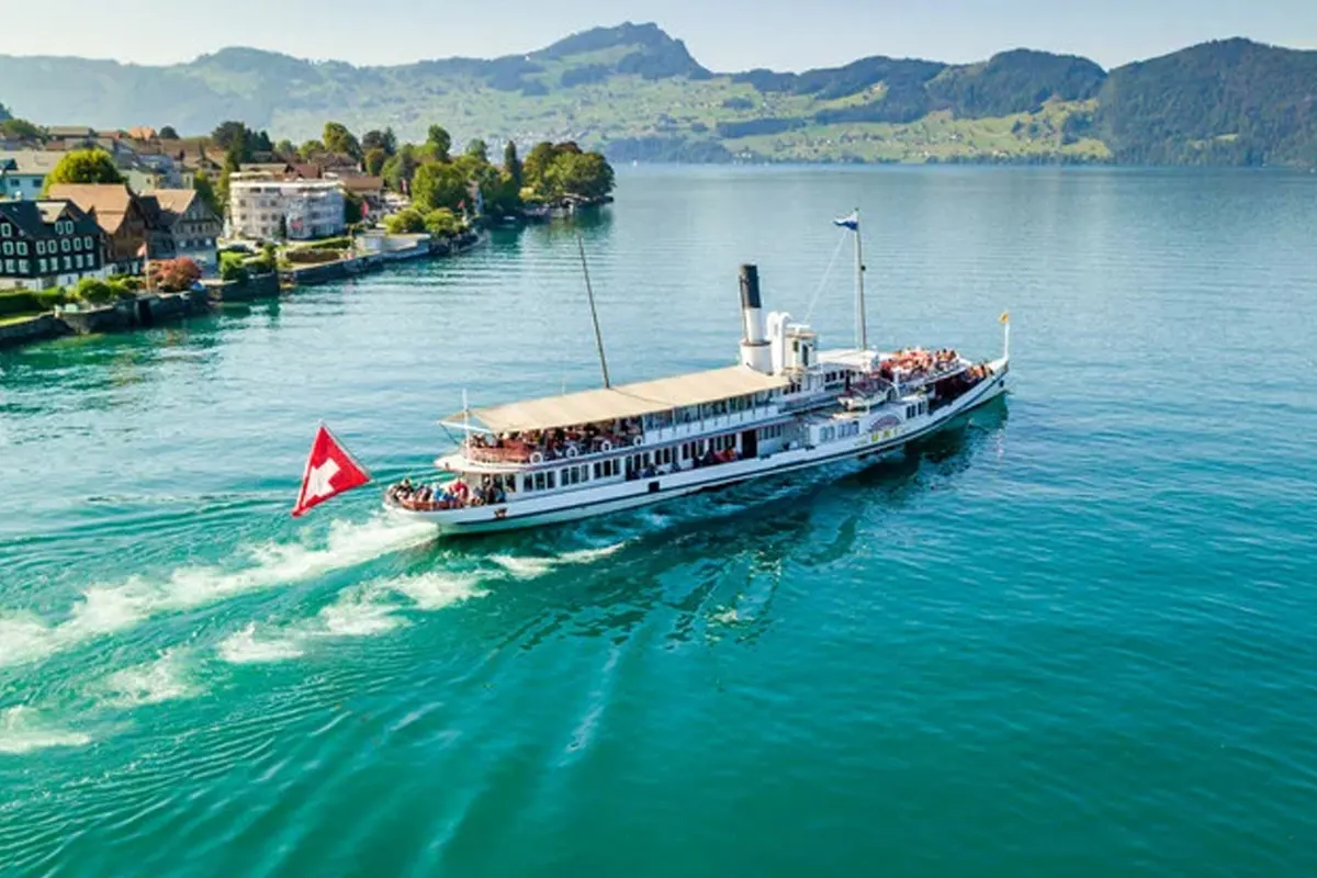 Enjoy a scenic boat ride on Lake Lucerne, surrounded by snow-capped mountains.