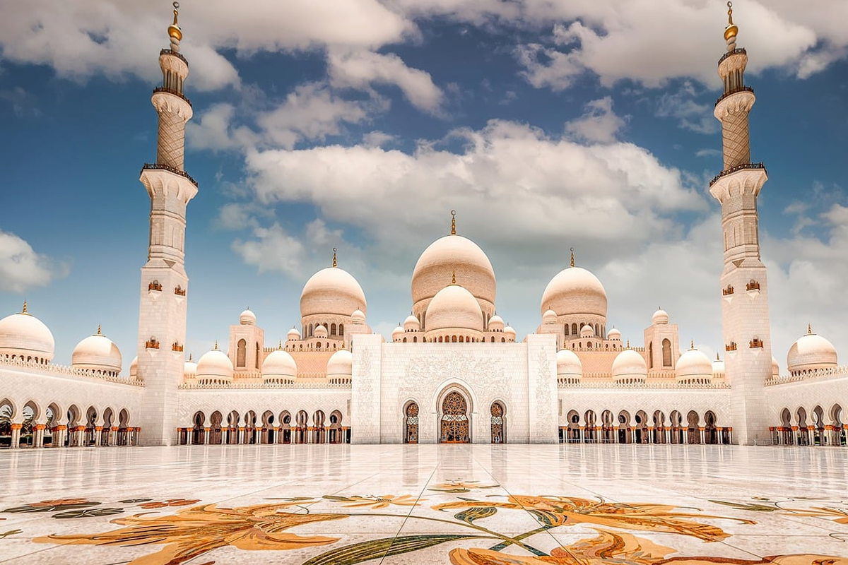 Admire the stunning white marble architecture, intricate chandeliers, and tranquil courtyards of one of the world's most beautiful mosques in Abu Dhabi.